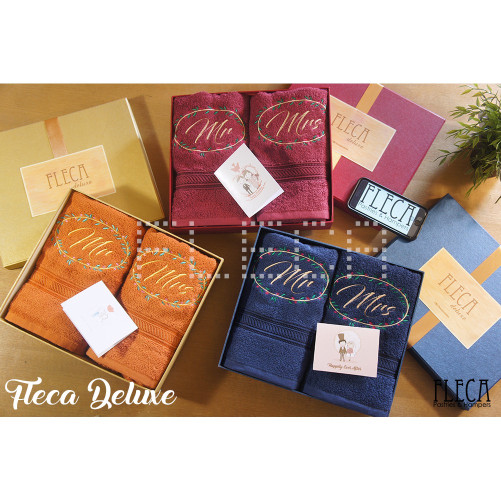 HANDUK BORDIR 2pcs + GIFT BOX + CardHANDUK READY STOCK, SIAP KIRIMJadi jangan tanyakan warna lain, model lain, &Custom NAMA. HANYA sesuai contohWarna RANDOM! Brand Handuk: Fleca Standard & Fleca DeluxeFleca Deluxe kualitas lebih bagus & lebih tebal dari Fleca StandardFleca Standard Bordir Husband - WifeFleca Deluxe Bordir Mr MrsUkuran Handuk 50x100 cmExclusive Fleca Gift Box kualitas bagus. (Hard Box) Warna sesuai RANDOMHI-QUALITY EMBROIDERYC. Pilihan Card:1. Happy Anniversary2. Happy Wedding3. Happy BirthdayTidak mencantumkan = RANDOMCantumkan di keterangan pemesanan yang LENGKAP:Contoh:C2. Pesan: Happy Wedding My FriendFrom: AnitaNB:1. Pesan di kartu handwriting, jadi kalo dikirim ke alamat sendiri disarankan ditulis sendiri.2. TOLONG membaca deskripsi produk sebelum order, Order = sudah menyetujui T&C yang kami buat. NO CANCEL.3. Pesan di kartu tidak cukup di keterangan, tulis aja pesan: DM. Karena kita ga cek DM satu per satu.4. Butuh cepat & sudah DM, tolong ditulis di keterangan waktu pemesanan.5. Pesan di kartu tidak cukup di keterangan, tulis aja di keterangan saat pesan:''"pesan: DM/Chat'''Karena kita ga cek DM/Chat satu per satu. Kalau tidak menulis spt itu kami TIDAK MENJAMIN pesan Anda tertulis di kartu.Mohon pemesanan sesuai instruksi untuk menghindari kesalahan.Thank you Cocok untuk:- kado pernikahan - kado ulang tahun - kado anniversary - seserahan - DllFAQ:1. Ready? Warna "..." ready?READY, kecuali ada keterangan kosong di atas2.Proses brp hari?Tolong dibaca di atas ya.. Karena sudah ada keterangannya.3. Dapatnya 1 handuk atau 2 ya?Dibaca keterangan di atas ya karena sudah ada keterangannya dpt apa saja..4. Sudah termasuk bordir?SUDAH. Sudah ada keterangannya di atas#hampers #handukbordir #bordirhanduk #kadohanduk #souvenir #hampersseserahan #souvenirhanduk #hampersjakarta #hamperssurabaya #hamperslamaran #hamperlamaran #souvenirpesta #handukbordirnama #giftset #hampersangjit #kadowe