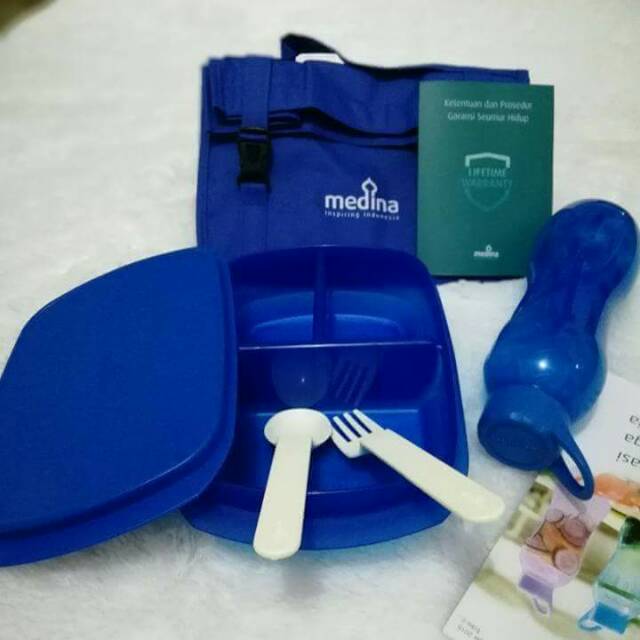 DUO SIMPLE SET BlueUdah ga jamannya lagi malas bawa bekal karena ribet. Dengan koleksi tempat makan dan minum dari Duo Simple set, dilengkapi dengan tas berwarna senada dan sendok garpu.Waktu makan siang pun jadi tepat waktu.Praktis, ga perlu ribet plus lebih hemat dan tambah sehat!Duo Simple Set, memiliki dua varian warna Blue dan Green, terdiri dari :- 1pc Tempat Makan bersekat, uk: 24 x 15 x 6 cm, kapasitas 1300 ml- 1 pc Botol Minum, kapasitas 530 ml- 1 pasang Sendok dan Garpu- 1 pc Tas berwarna senadaBerat Produk - Volume : 0.84 kg- Real : 0.5