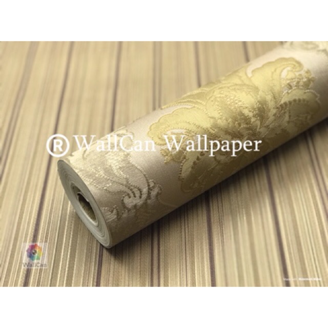 Suplier Perlengkapan di Kabupaten Bangkalan Wallpaper Vinyl Mewah Non Sticker Motif Kombinasi Classic Salur Krem Tua 53cmx10m dari Tidak Ada Merek Kota Jakarta Timur