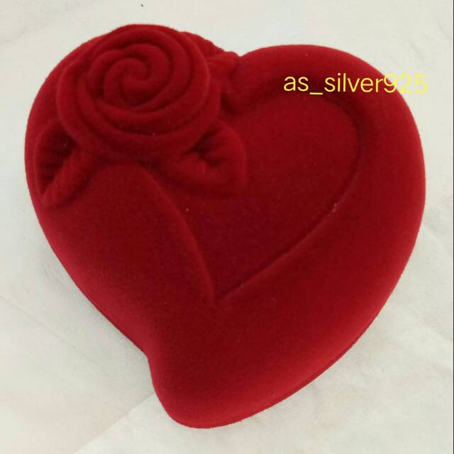Kotak cincin Love Mawar Bludru:- Kapasitas muat 2cincin- warna bantalan dalam merah- ukuran PxLxT (5.5x6