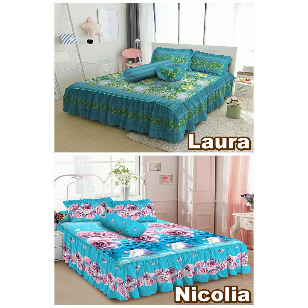 Catatan Penting Toko:Pastikan sudah membaca "Peraturtan Toko" di profil pic produk. Wajib untuk memberikan video unboxing bila menerima paket yang rusak atau produk yang cacat produksi.Bahan Kain MicrotexGramasi kain Lebih tebal 110 GsmTidak luntur , Harga Ekonomis dengan kualitas TerbaikWhat In Box :1 Pcs Sprei Rumbay (Sprei dengan keempat ujung yang berpony, sehingga lebih mewah)Ukuran 180cmx200cmx39cm2 Pcs Sarung Bantal (dengan tambahan dacron, sehingga lebih empuk saat dipakai)2 Pcs Sarung Guling (dengan tambahan dacron, sehingga lebih empuk saat dipakai)1 Bantal HatiMerk Kintakun D'luxe sudah terkenal dengan kualitas dan design motifnya yang sangat modern. Dijamin tidak luntur dan tidak be