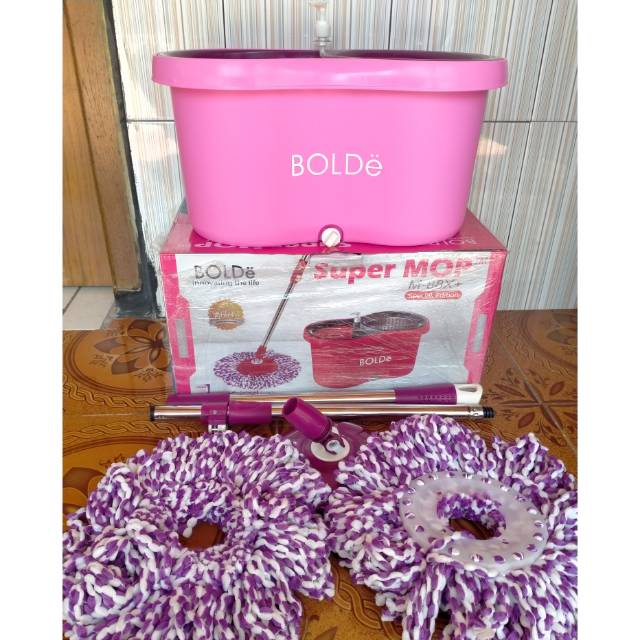 Bolde M-88x merupakan bolde super mop terbaru dengan tambahan Lubang Pembuangan dan Botol Sabun. Berbeda debgan tipe 169x sebelumnya, tipe ini memiliki plat list warna hitam yang terbuat dari besi. produk Super Mop Bolde sudah terbukti Pel berkualitas tinggi dan berteknologi baru yang praktis dan effisien penggunannya. Kegiatan bersih-bersih pel rumah menjadi menyenangkan, dengan usaha / tenaga jauh lebih minimal dibandingkan alat pel konvensional. Bolde Super Mop Premiere menggunakan teknologi handpress yaitu tekan gagang pel kedalam ember maka head mop akan berputar untuk membersihkan setelah digunakan dan mengeringkan secara otomatis. Tidak seperti alat pel lainnya yang menggunakan injakan pedal untuk mengeringkan dan seringkali banyak keluhan rusak.Tekan untuk membilas dan tekan untuk mengeringkan dengan putaran 360 menjadikan tangan Anda tetap bersih dan higenis. Benar-benar sangat praktis. Dan satu lagi kelebihan dari Bolde Super Mop Premiere adalah head mop nya terbuat dari microfiber sehingga dapat mengangkat debu dan kotoran dengan sempurna.Detail:- Terdapat Lubang Pembuangan- Plastik Kualitas Tinggi dengan plat besi pada listnya- Terdapat Botol Sabun pada Ember- Gagang stainless steel- Bahan Mop Cepat menyerap