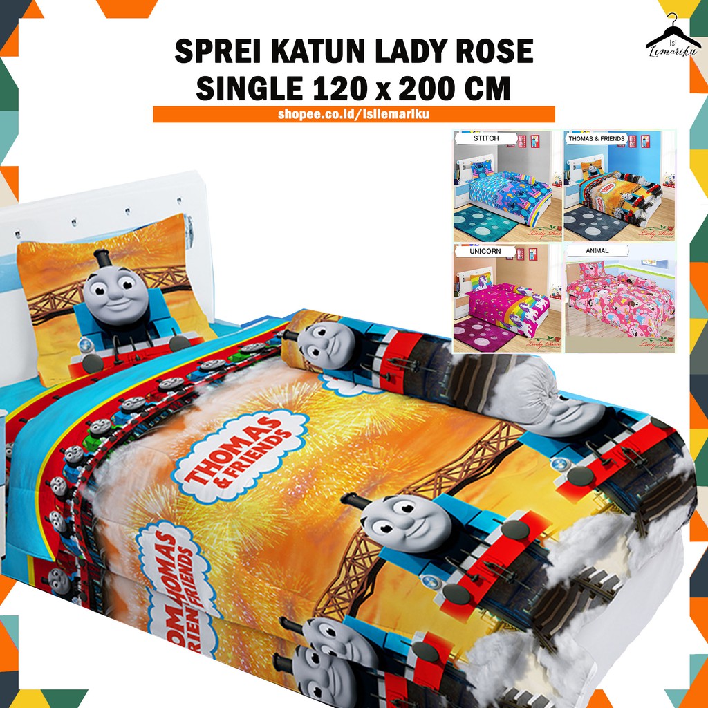 Sprei Lady RoseDisperse QualityUkuran SINGLE FLAT: 120 x 200 x 20 cm Sudah termasuk: 1 sarung bantal dan 1 sarung guling ukuran standarBahan halus dan lembut, dengan aneka motif anak dan dewasa. Cocok untuk dipakai anak-anak maupun dewasa. Perhatikan saat mau membersihkan sprei Lady Rose: - Suhu air maksimum 40 derajat celsius- Jangan menggunakan pemutih- Setrika dengan panas sedang- Jangan kena sinar matahari langsung- Jangan memakai sikat DIJAMIN ASLI!Harap perhatikan hal berikut ini sebelum memesan. Membeli produk ini berarti Anda sudah menyetujui: VARIAN RANDOM. Dapatkan harga grosir langsung tanpa minimum pembelian. Warna/motif yang dikirimkan acak, tidak bisa pilih/request walau sudah tanya melalui chat/diskusi. VARIAN PILIH MOTIF/WARNA.Pembeli harus konfirmasi ke penjual terlebih dahulu untuk memastikan ketersediaan motif/warna. Pilihan warna dicantumkan di Catatan Pesanan saat order disertai 3-4alternatif (jaga2 jika yang diminta sudah keburu terjual ke orang lain yg pesanannya masuk duluan). Bila tidak ada catatan/konfirmasi ketersediaan, kami akan mengirimkan acak kecuali warna/motif yang diminta tersedia.Harap tidak memesan motif yang berbeda dari varian, misalnya: beli di varian A tapi di catatan minta B / C (kecuali sudah konfirmasi dengan kami bahwa boleh pesan dgn cara tersebut). Apabila tidak ada konfirmasi sebelumnya & pilihan yang diinginkan kosong, maka kami akan kirim pesanan sesuai varian yang dipesan & mengabaikan catatan, tanpa konfirmasi terlebih dahulu. PROSES PESANAN.Pesanan yang masuk TIDAK DAPAT DIBATALKAN. No Cancel. Membeli produk kami berarti telah menyetujui kondisi